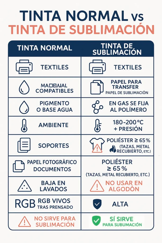 Comparativa rápida: tinta normal vs tinta de sublimación